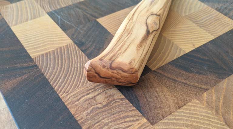 Ich habe mich für Olivenholz entschieden, weil es recht pflegeleicht und relativ unempfindlich gegen Wasser ist.