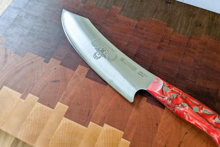 Es wird jedoch auch als Kochmesser und als universelles Messer für die Küche beworben.