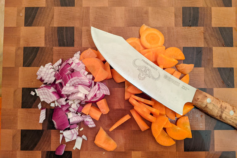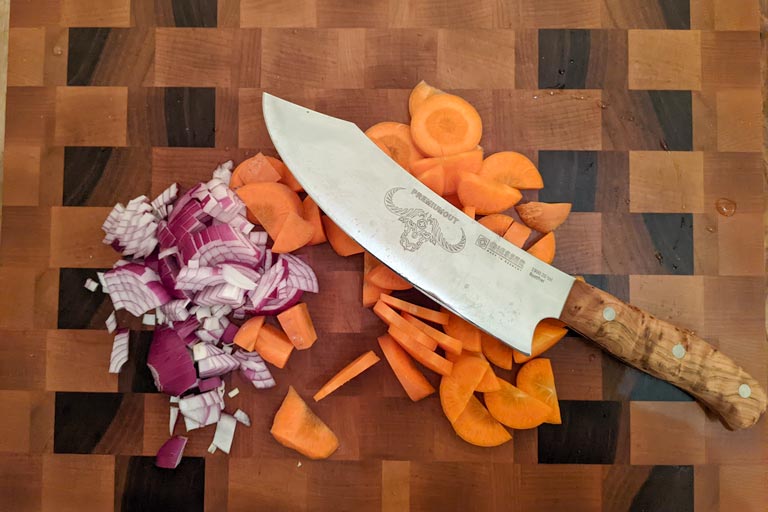 D.h. das Schneiden fühlt sich vor allem bei Gemüse nicht natürlich an und ist – verglichen mit anderen Kochmessern – teilweise mühselig.