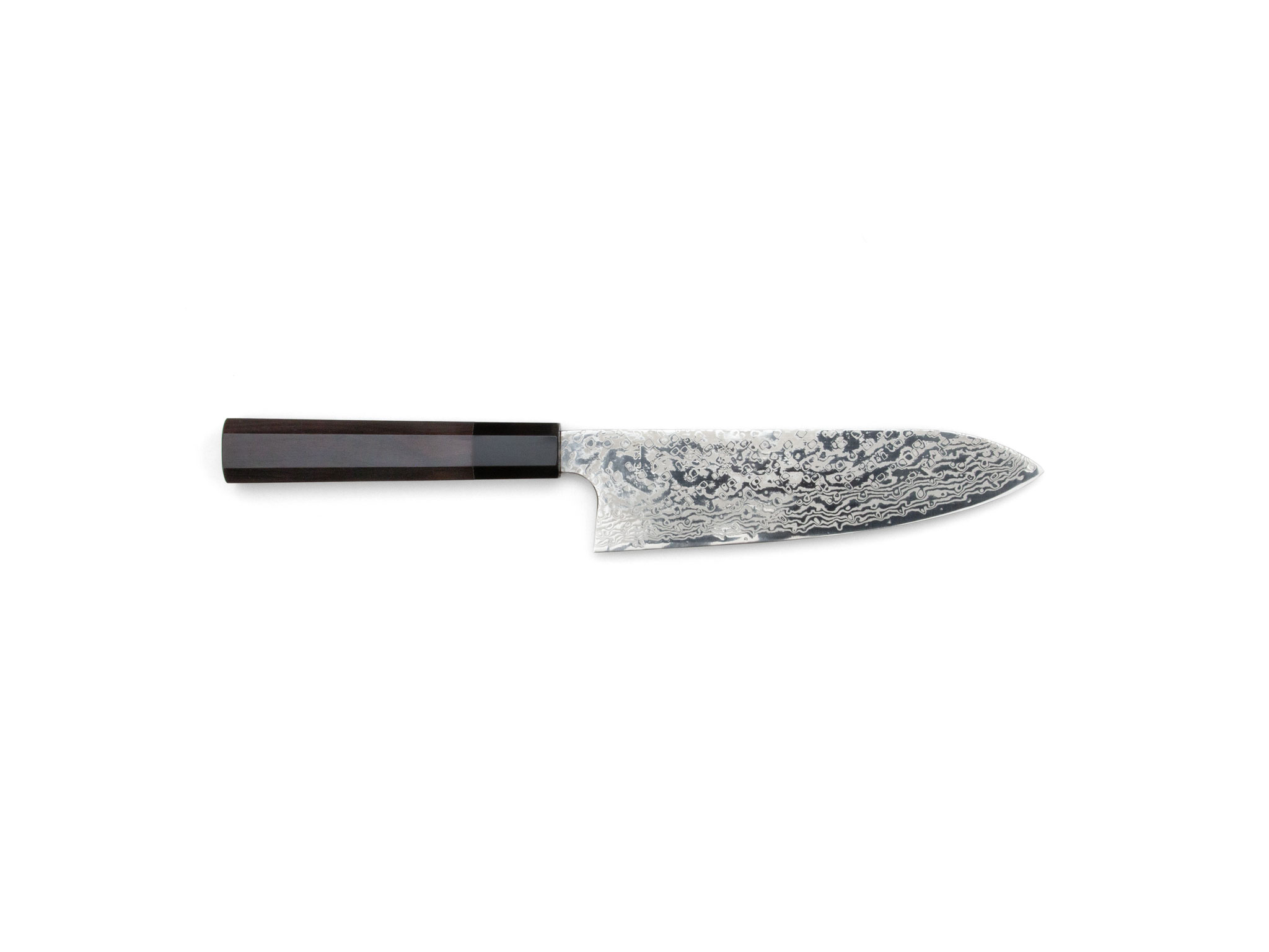 Das Santoku ist ein handliches japanisches Allzweckmesser. Es eignet sich zum Schneiden von knochenlosem Fleisch & Fisch, Gemüse und Früchten. Santokus sind ideal für den Hausgebrauch, für Frauen und für alle, die handliche Küchenmesser bevorzugen.