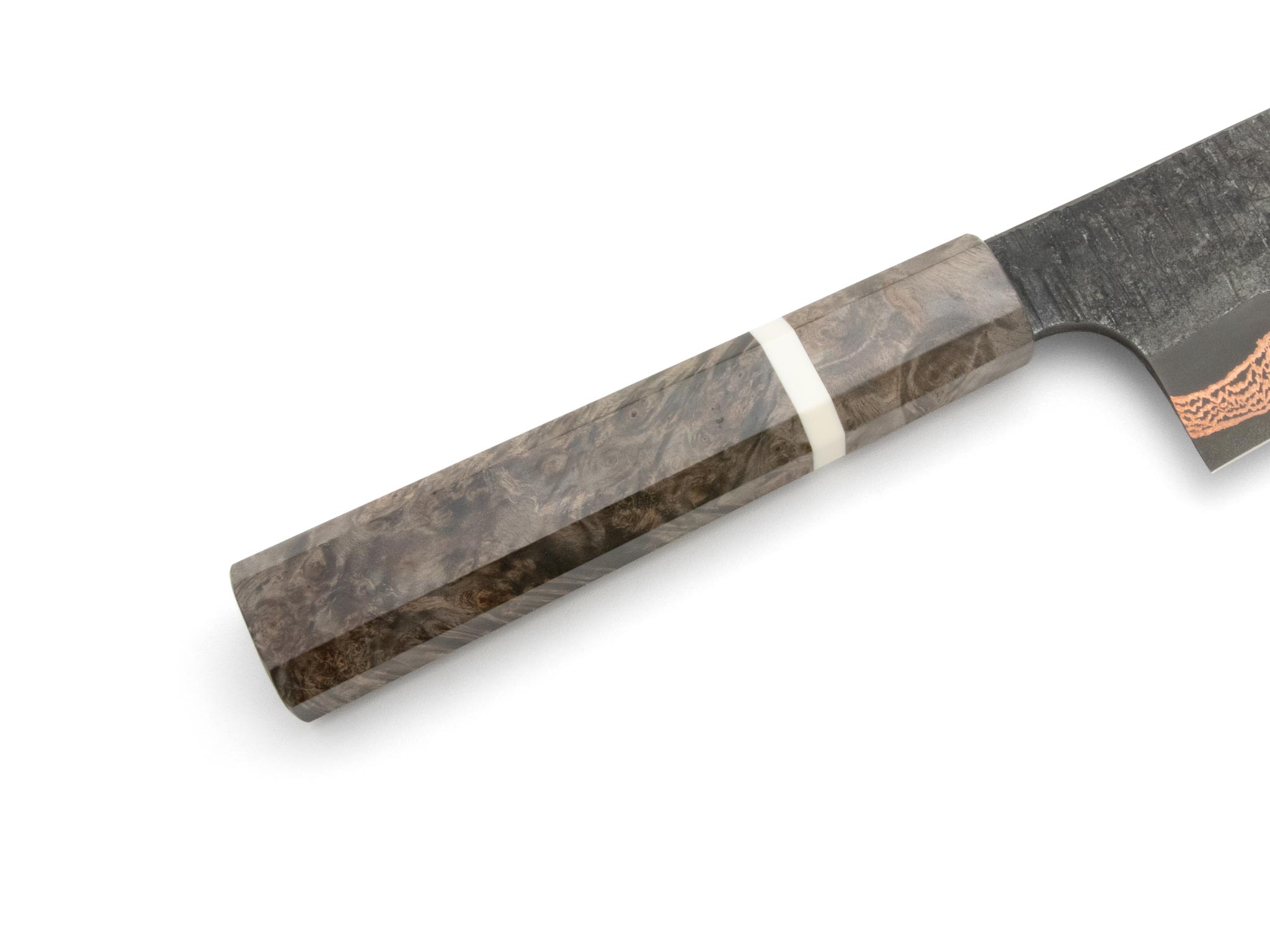 Diese Messer zeigen erneut die Kreativität von Tsuyoshi Yoshizawa-san – dem Schmied von Nigara Hamono – der immer wieder Messer mit neuen & innovativen Designs entwirft, die teilweise einzigartig in der Messerwelt sind.