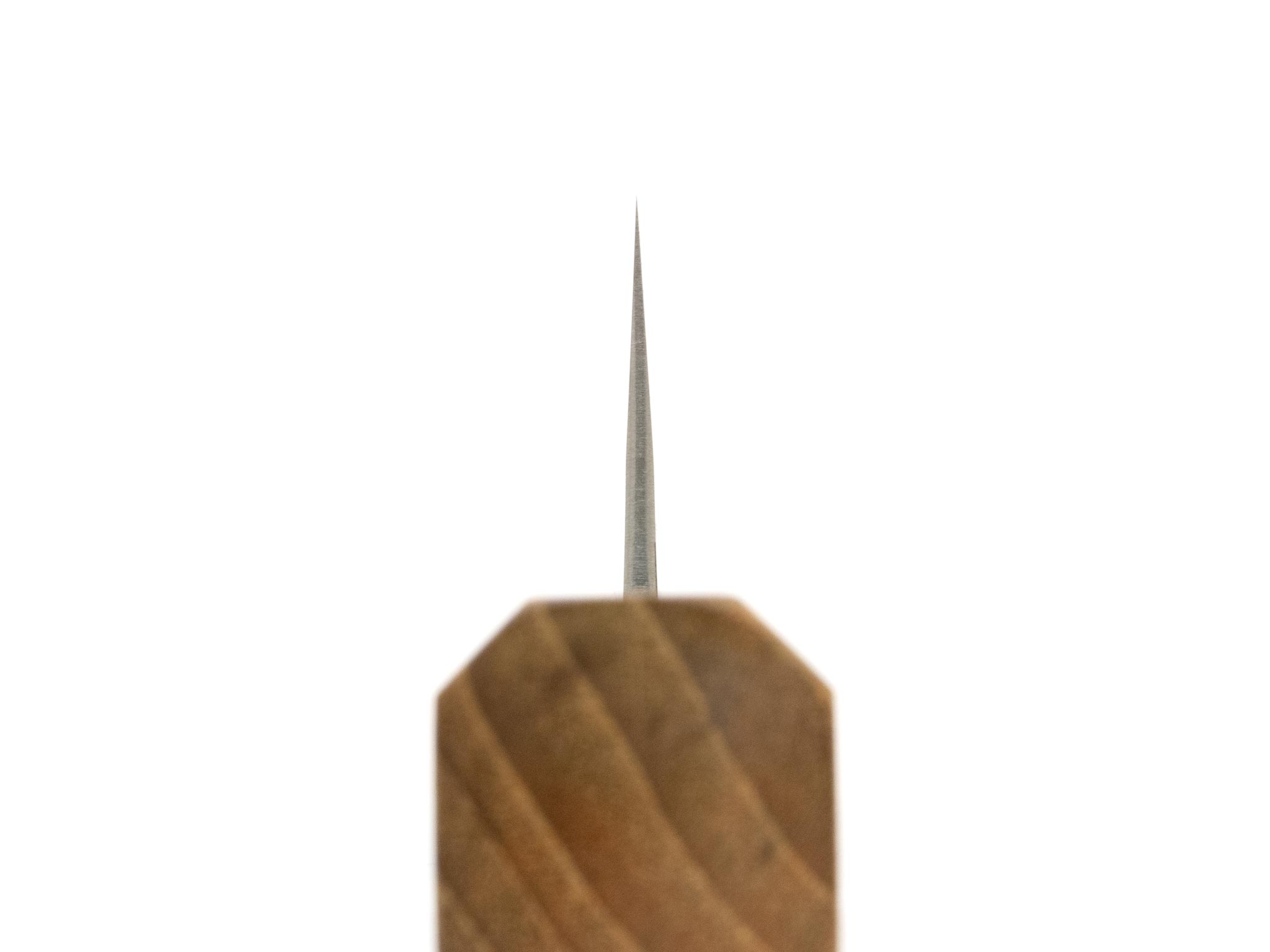 Die Schneidlage besteht aus (nicht rostfreiem) Shirogami #2 Carbonstahl. Shirogami hat eine leicht überdurchschnittliche Schnitthaltigkeit, er lässt sich dafür sehr schnell & einfach schleifen und erreicht eine überragende Schärfe.
