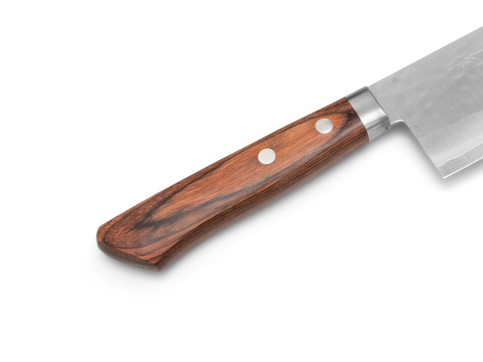 Die VG1 Tsuchime Serie von Masutani ist eine weitere hervorragende Serie speziell für Hobbyköche & Einsteiger. Sie ist etwas günstiger als die anderen Serien mit VG10 & Damast, von der Schneidleistung stehen diese Messer den anderen Messern in nichts nach. Diese Messer sind dank des VG1 Stahlkerns sogar etwas anfängerfreundlicher als die VG10 Serien.