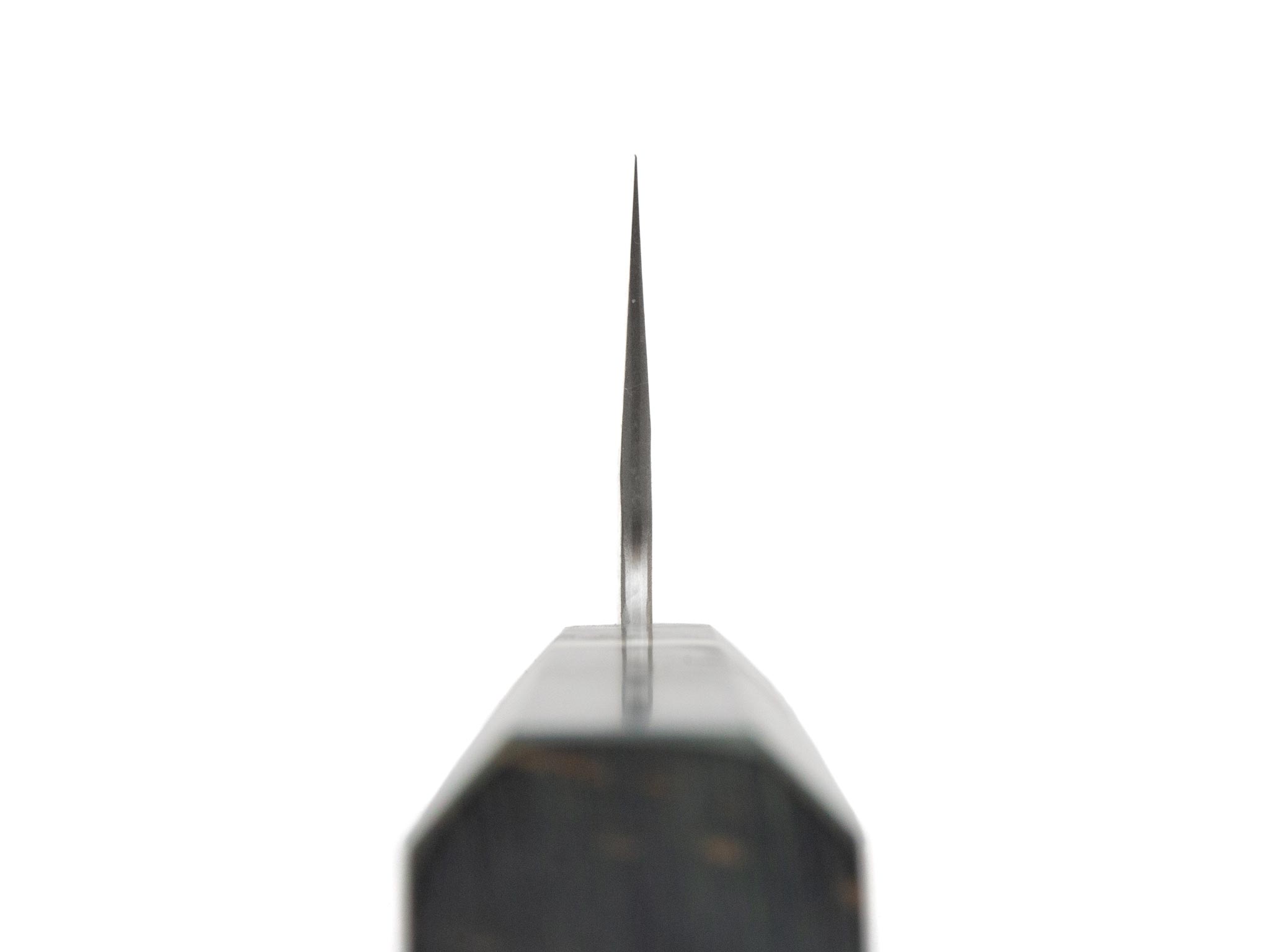 Das Kiritsuke Gyuto ist ein großes Allzweckmesser und im Grunde eine Mischung aus Kiritsuke & Gyuto (Kochmesser). Kiritsuke Gyutos sind ein guter Hybrid für alle, die die etwas rundlichere Klingenform von Gyutos vorziehen, gleichzeitig aber die Spitze von Kiritsukes bevorzugen. Diese Messerform eignet sich für alle gängigen Schneidarbeiten (z.B. knochenloses Fleisch & Fisch, Gemüse & Obst), die Spitze eignet sich sehr gut für feine Schneidarbeiten (z.B. Zwiebeln, Knoblauch).