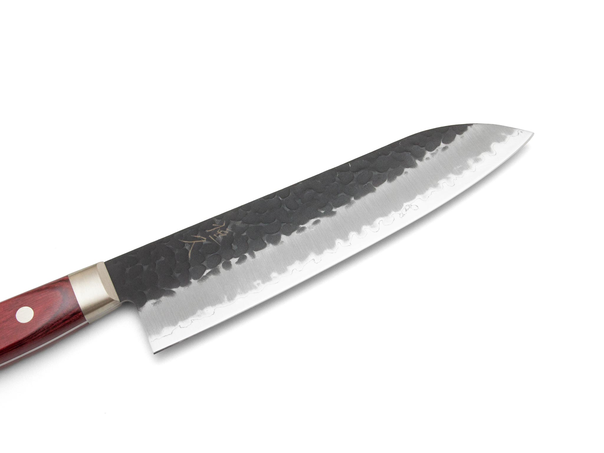 Das Santoku ist ein handliches japanisches Allzweckmesser. Es eignet sich zum Schneiden von knochenlosem Fleisch & Fisch, Gemüse und Früchten. Santokus sind ideal für den Hausgebrauch und für alle, die handliche Küchenmesser bevorzugen.
