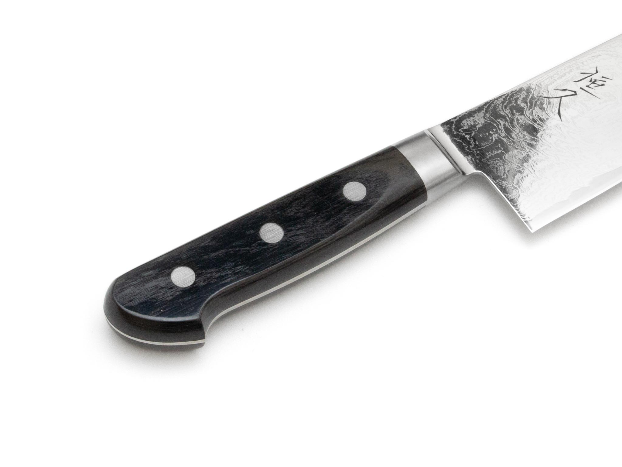 Santokus sind handliche Allzweckmesser für Fleisch, Fisch & Gemüse, der Schwerpunkt liegt jedoch auf dem Schneiden von Gemüse. Santokus eignen sich ideal für den Hausgebrauch oder als ergänzendes Allzweckmesser zum Gyuto.