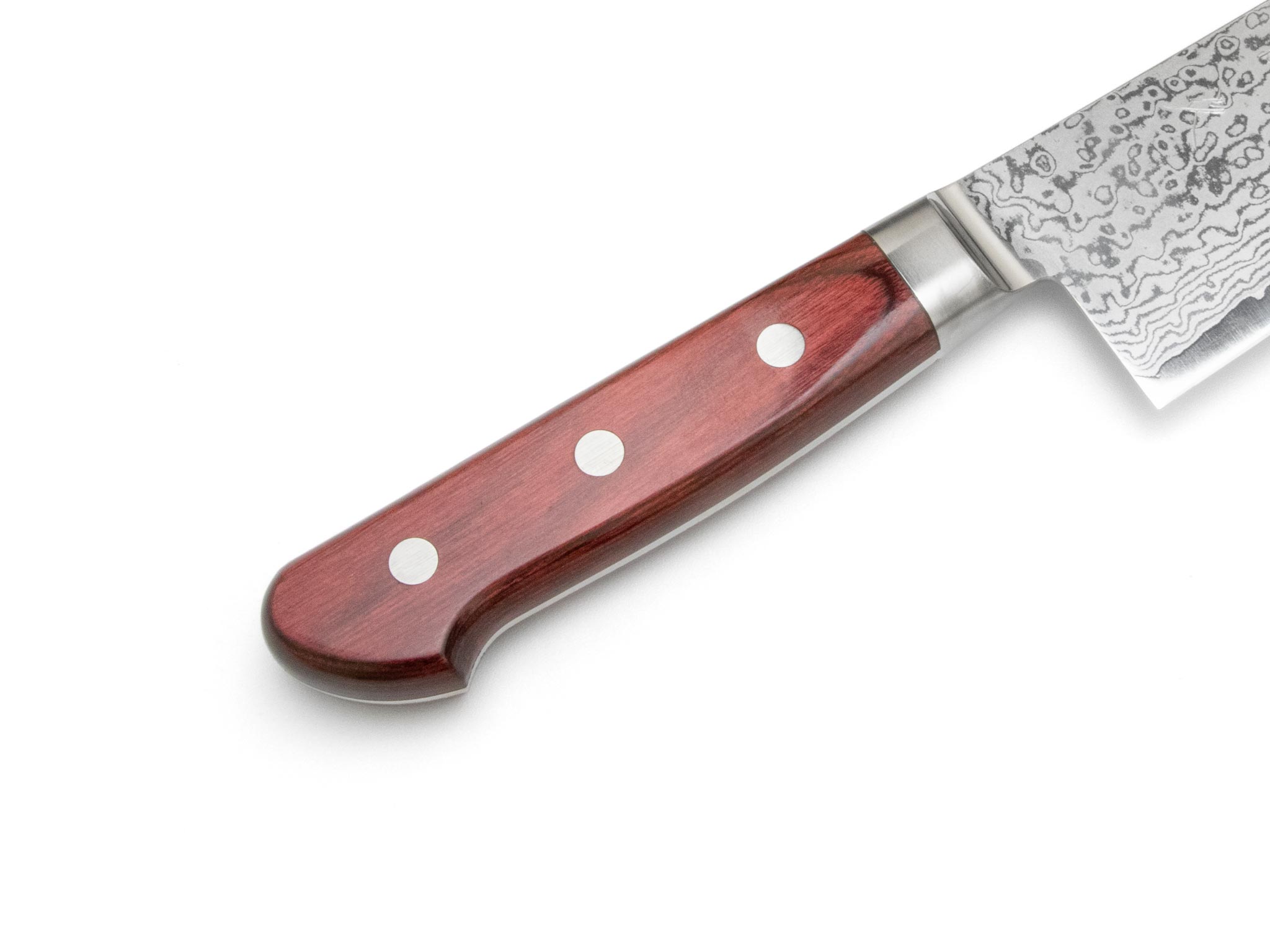 Eine weitere hochwertige & wunderschöne Serie von Tsunehisa. Die Schneidlage besteht aus VG10, einem hervorragenden Allround Edelstahl, der pflegeleicht ist, eine sehr gute Schnitthaltigkeit besitzt und nicht allzu empfindlich ist.