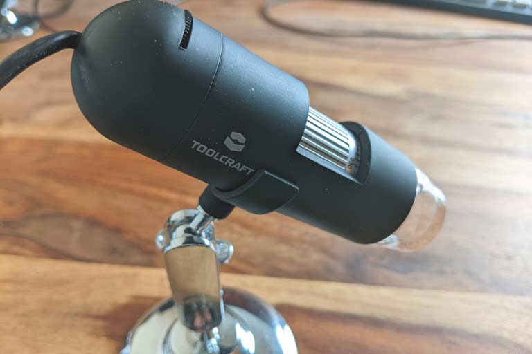 Mich hat – für meine Zwecke – der Standfuß am meisten gestört. Festgezogen ist der Standfuß in Ordnung, für kleine Positionsveränderungen gefiel mir der Standfuß jedoch nicht und ist öfter mal eingeknickt. Mit einem Gestell oder einem flexiblem Arm, wäre das Toolcraft Mikroskop aber unter meinen Favoriten. Das Toolcraft USB Mikroskop gibt es bei Amazon* immer recht preiswert.